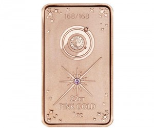 The ingot is set with seven rare pink diamonds embedded in a one ounce bar of 22-carat pink gold, with an emblem of the boab tree on the reverse side.